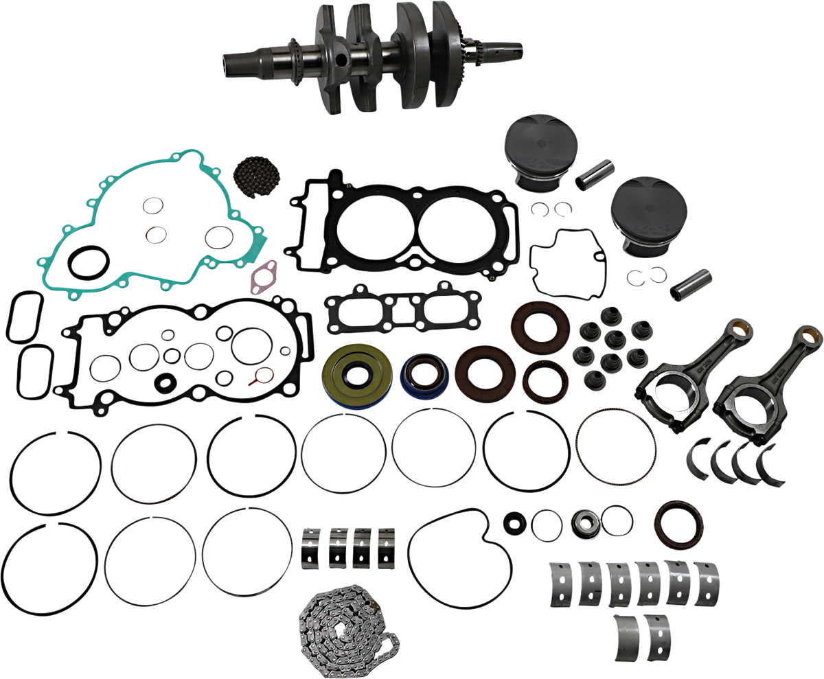 Include arbore cotit, kit de piston, kit complet de garnituri de motor cu garnituri de ulei, rulmenți principali și garnituri, kit de reconstrucție a pompei de apă, rulmenți de transmisie, bucșă/kit de etanșare a arborelui contrar, rulment cu știfturi, lanț cu came și rulmenți de contra-echilibrare, dacă este cazul