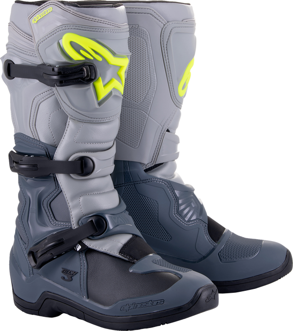 Cizmele Alpinestars Tech 3 au fost dezvoltate pe baza gamei superioare Tech 5, oferind un profil anatomic și un nivel înalt de protecție, fiind ideale pentru cei care se inițiază în motocross și off-road sau pentru cei care caută cizme rezistente și ușoare la un preț competitiv.
