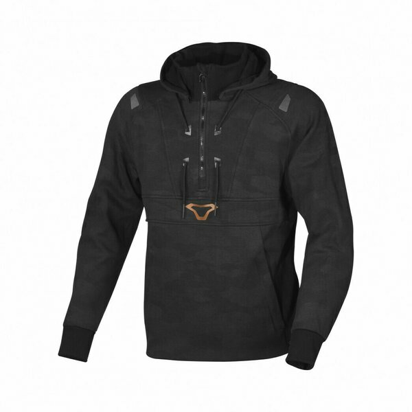 Designul si functionalitatea merg mana in mana atunci cand vine vorba de hanoracul Macna Byron. Lacasul special proiectat pentru degetul mare mentine manecile la locul lor in timp ce fermoarul din zona pieptului faciliteaza imbracarea acestuia. In plus, gluga poate fi indepartata. Protectiile nivel 1 de la umeri si coate, intariturile din aramida, precum si elementele reflectorizante asigura un nivel ridicat de siguranta. Suplimentar, hanoracul poate fi echipat cu protectie pentru spate nivel 2.