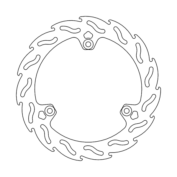Flame shaped venting slots and outer perimeter ensure an equal amount of contact surface between the brake pad and disc throughout the whole rotation of the disc.