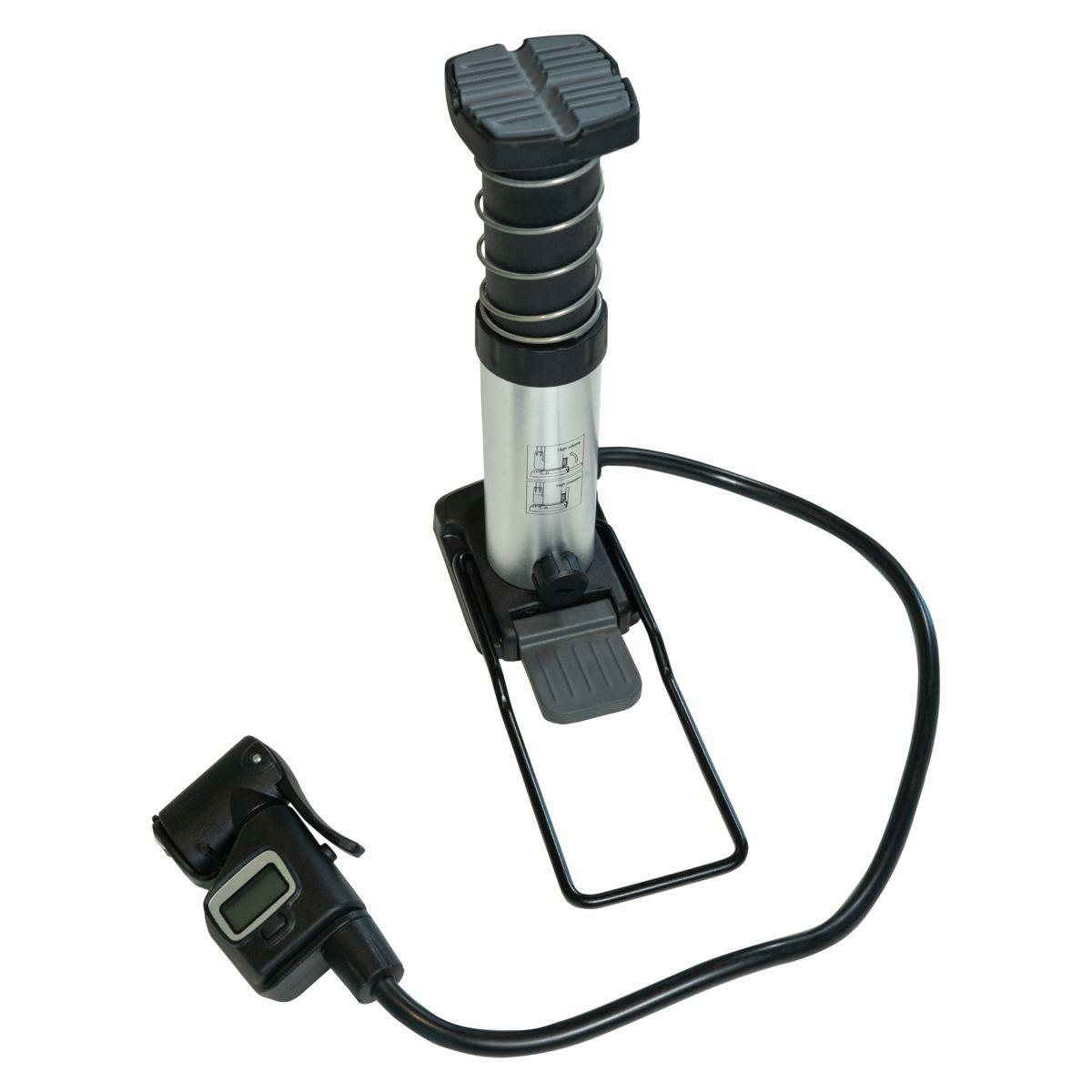 Mic și ușor, deci foarte portabil - salvează ziua în cazul unei puncție în mișcare! Mini-pompă cu picior cu manometru pe capul supapei pivotante, care se potrivește tuturor supapelor predominante.