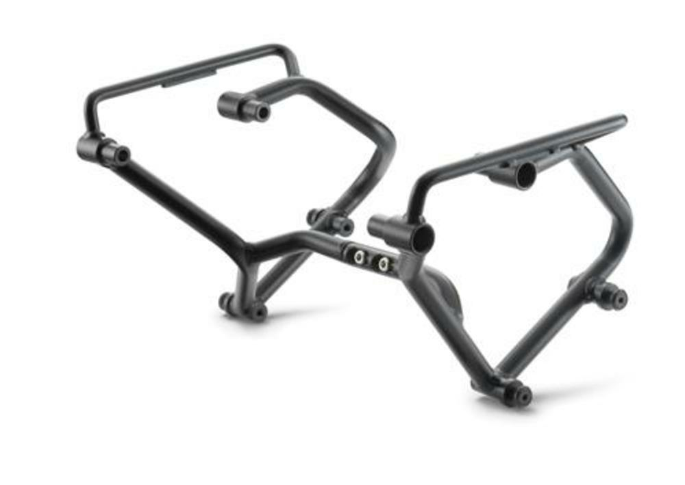 Construcție tubulară robustă din oțel pentru atașarea simplă a setului de genți laterale 64112931000.Nu poate fi folosit în combinație cu Akrapovic Slip-on Line 64105979000!